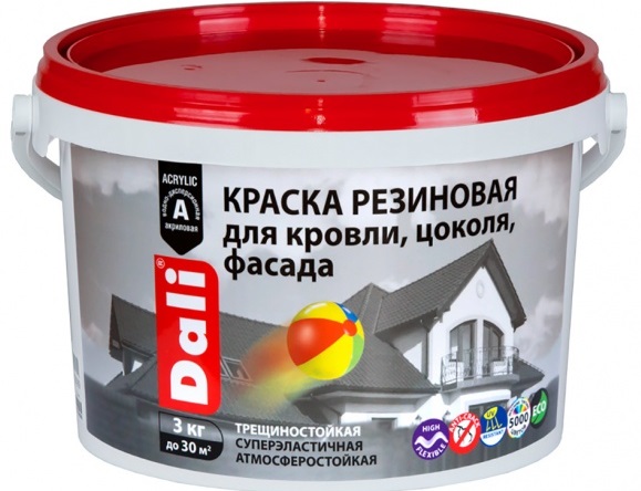 Rubber paint refers to the universal. It can be used for both interior and exterior work. The variant refers to frost-resistant: even in winter, it does not crack and does not lose its qualities. Often rubber or rubber compounds are used to paint the roofs: it additionally protects the roof against leakage, since it has high wear and moisture-resistant characteristics. The same quality is important when painting metal elements in pools, bathrooms, showers. You can not use the paint only in the sauna, because it will not stand so high temperatures.