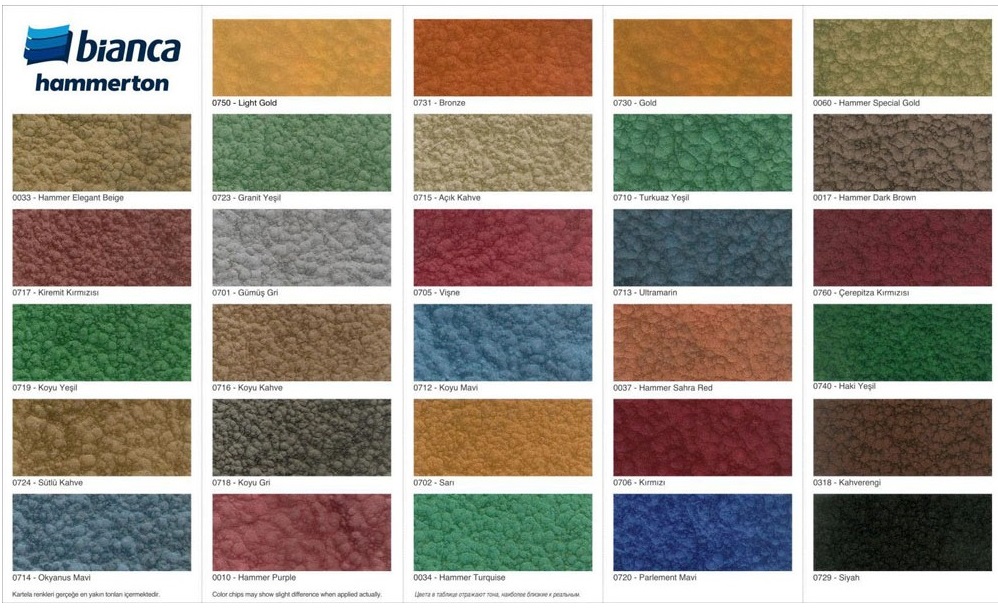 The paint owes its name to the specific surface that forms after dyeing. It is similar to the surface of the hammer: the same non-uniform and slightly rough. To achieve this effect, different substances are added to the composition: aluminum powder, fine glass and others.