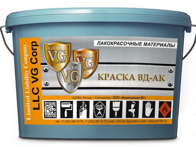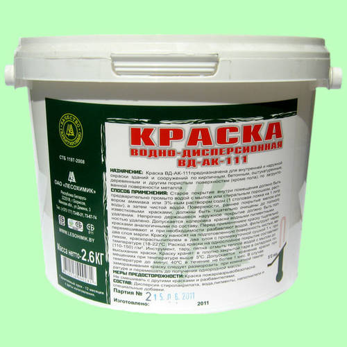 - When buying, you should carefully consider the labeling on the packaging. The letters VD mean water dispersion paint. And the number next to them - its purpose. The composition marked VD1 can be used for painting exterior walls, and VD2 water emulsion is suitable exclusively for interior decoration.