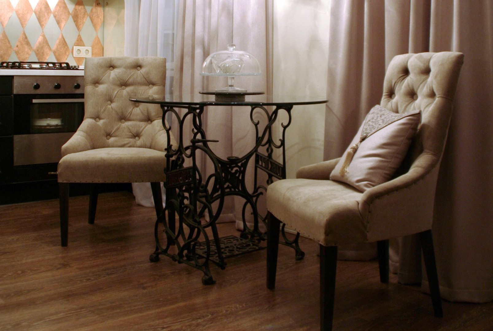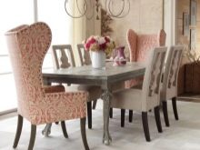 English chairs with ears are perfect for ceremonial dinners in spacious living rooms, will give the hall solemnity and elegance, create the atmosphere of a royal meal. Even if there are only a couple of them, they will stand perfectly at the head of the table.A more elegant and light copy of Voltaire chairs is often used as chairs for traditional dining tables. Of course, if space permits