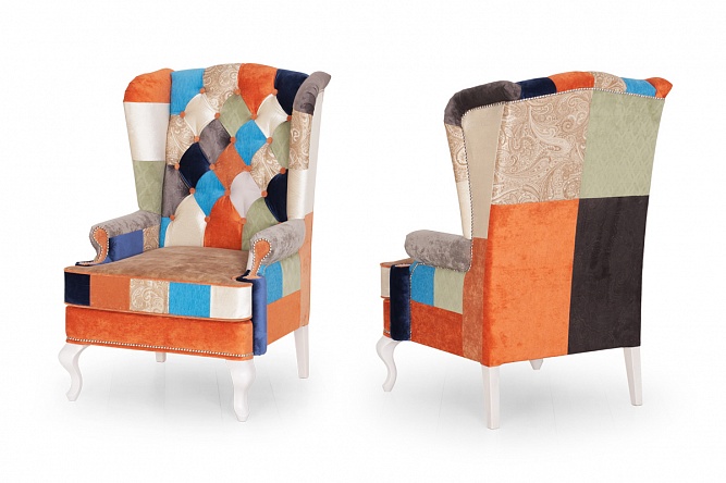 - Patchwork. The old handicraft technique of this style, the combination of bright patches and patterns will transform the English chair and turn it into a playful, intricate design element. Such a chair needlewomen will be able to sheathe their own hands.