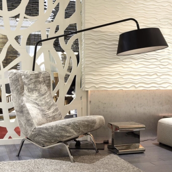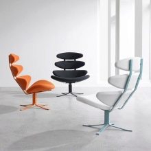 - Renowned decorator from Denmark, Lars Larsen, came up with an extraordinary furniture design called "Corona". This is a seat with corners without corners and a back tilted at 45 degrees. The material for the upholstery served as genuine leather.According to the author's idea, the chair can be of various tones.
