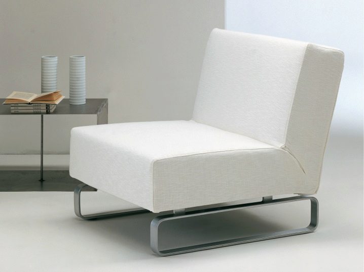 The chair without sides can be called a universal piece of furniture; it is ideal for arranging a spare place to sleep in an apartment. Thanks to him, the lounge area is easily settled and the room visually expands. The absence of armrests, performing the function of support for the hands allows you to relax and rest comfortably.