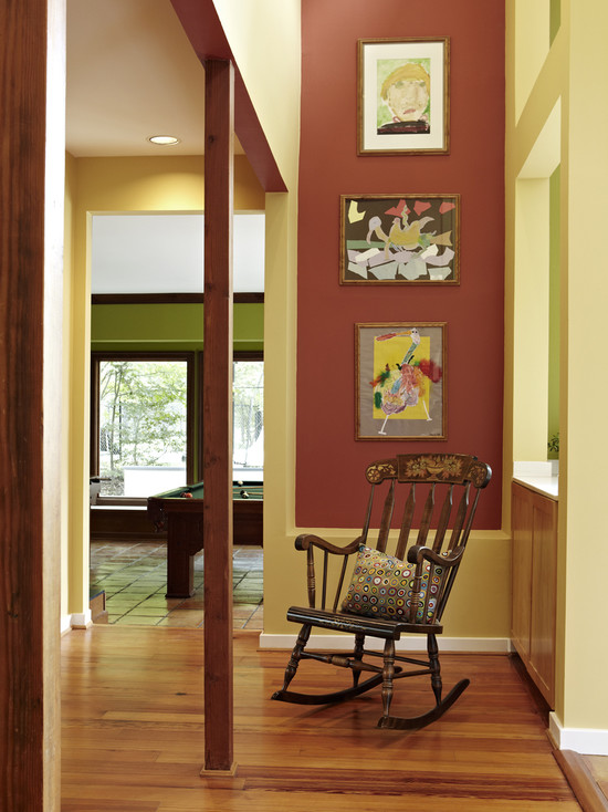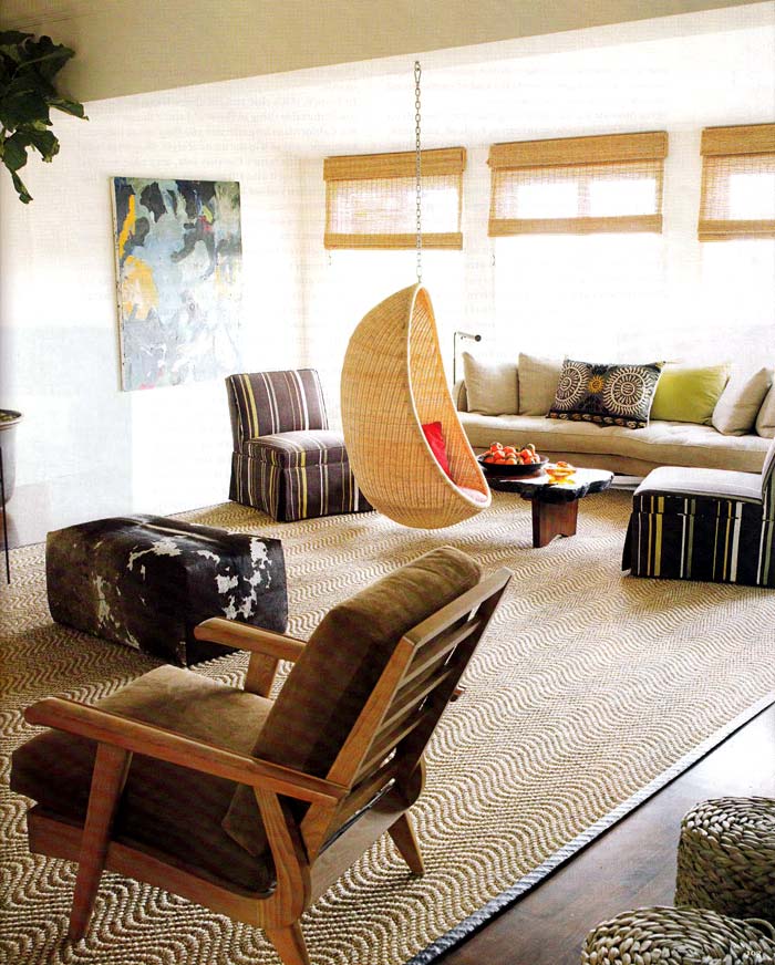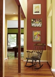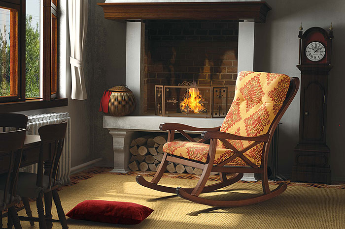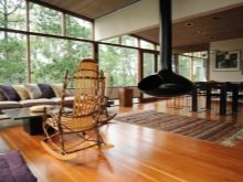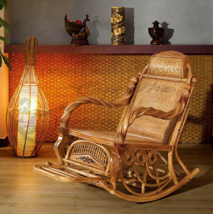 For a country interior a rocking-chair (including a homemade one) will be a wonderful addition. If we are talking about compliance with all stylistic requirements, then the color of such a product should correspond to the natural shade of wood.