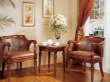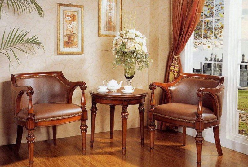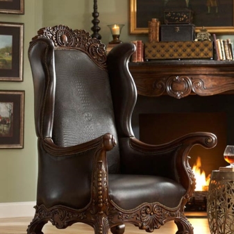 It should be borne in mind that for classical design the most suitable option is to do that for classical design the most suitable option is vintage wooden (or (or antique) armchairs with upholstery made of genuine leather. Of course, such models are not cheap.