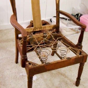 - First, you should carefully check if there are any damages on the chair elements. If a breakdown is found, then it must be repaired. If in the process of restoration it was found that the chair leg, made of chipboard, was deformed and began to crumble, then it should be redone. Here is useful furniture shield.