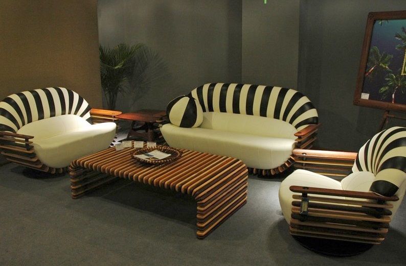 Products from the massif of a tree (especially handwork) are universal and can fit into any design project. All thanks to the unique natural patterns. Now the furniture market is replete with cheaper options of the so-called “glued wood”. But it is easy to distinguish such a product from a high-quality armchair made of solid wood - the latter have patterns on the surface with a gradual change of color. It happens that when creating a more economical version of the chair, designers use two types of array.