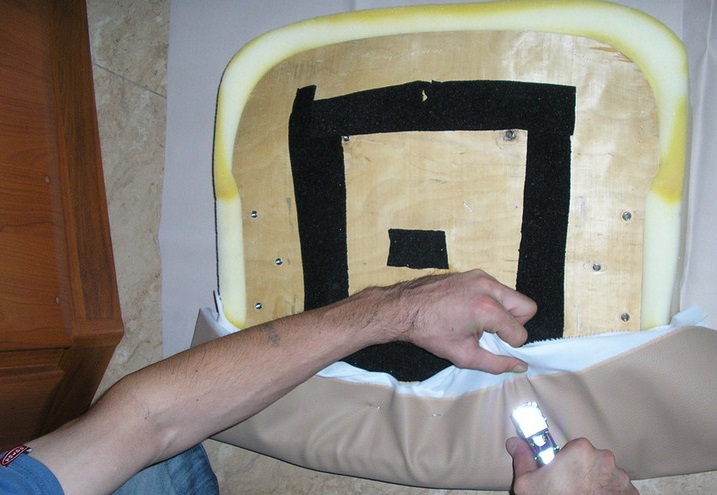 After completing all the preliminary work you need to start making upholstery. Before that, measure the old upholstery and leave an allowance of 4-5 cm on each side of the canvas. After measuring all the values, you can begin to cut a new upholstery. It is important to remember that a new upholstery should have a good degree of tension.