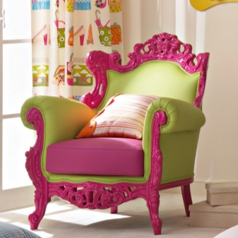Rocking chairs are also found in nurseries. If the baby is very small, then mom will be able to rock the baby on her knees, putting him to sleep.For a more adult child, parents buy small soft rocking chairs, where the child can sway at his own pleasure. The shape of such a rocking chair can be both classic and unusual.