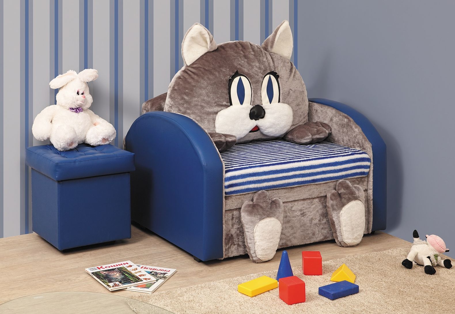 Another interesting option is a large-sized chair that unfolds to the size of a sofa. This is very convenient, because the kid will be able to play on it or even take a nap after an active pastime. These chairs are good and in small rooms, and in large, because folded do not occupy too much space.