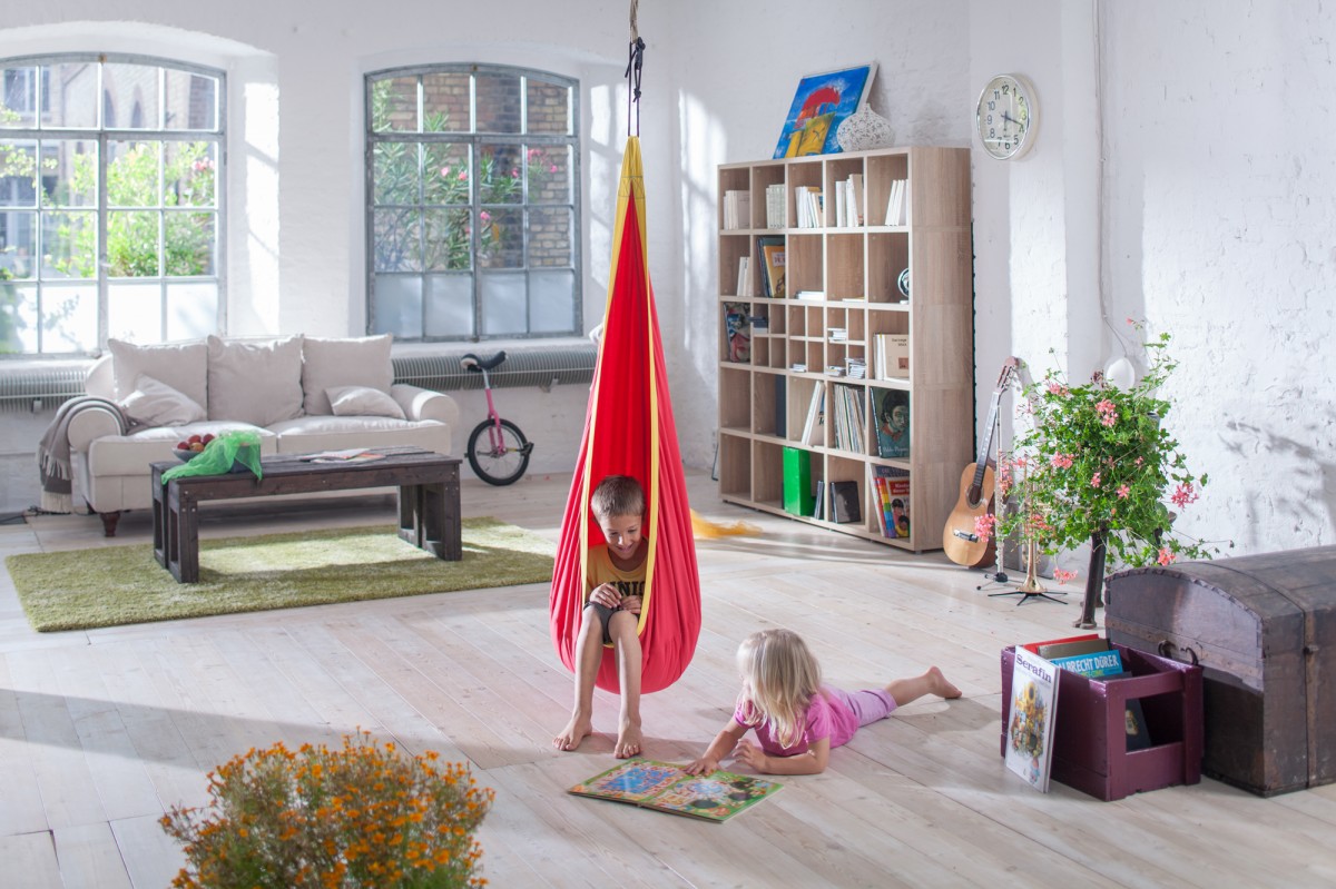 In children, such products are used less frequently for safety reasons. So that the child does not fall out of the hanging chair, do not buy it into the room completely crumbs. But for an older child, you can choose it. Such models are very cute and beautiful. Especially if you pick up a wicker product with a soft seat or even create it yourself.