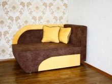 - Corner models. There are specialized models of chairs, designed for installation in the corner of the room. These products have two backs that form a right angle between them. An angular chair, folding either to the left or to the right, depending on the position, forms a sleeper with a width of at least 100 cm.