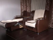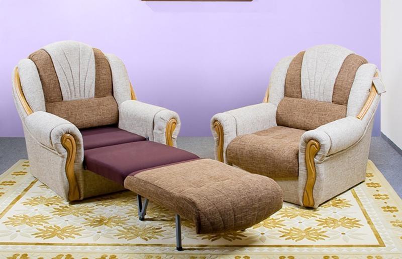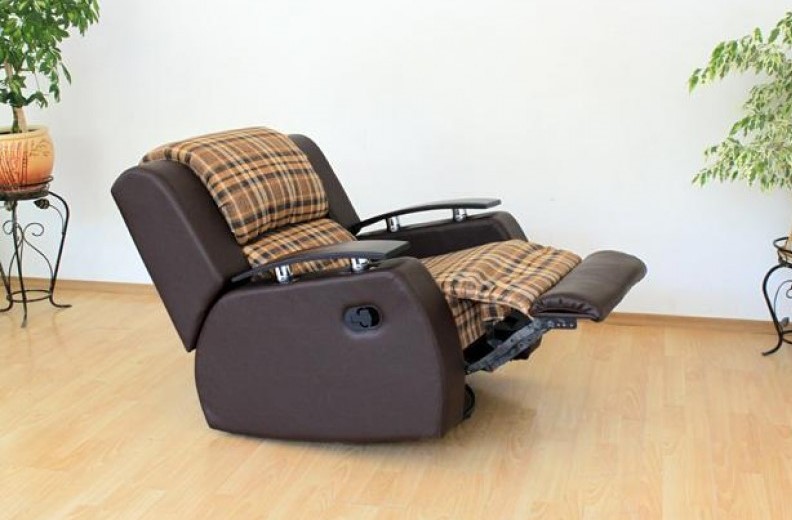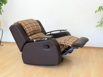 - Recliner Armchairs-recliners are equipped with a mechanized design, which allows one-click on the button to change the position of the product in space. Reklayner can not only fold out and fold the design, but also change the angle of the back, its height, the same applies to the seat. Often, these models are equipped with an additional footrest. Recliners are not suitable for daily sleep, but they are indispensable as a place for rest, reading and relaxation.
