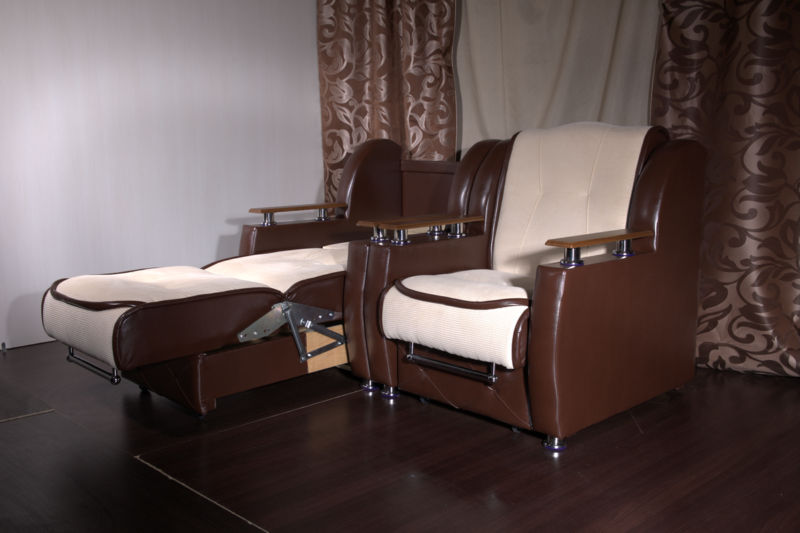 - "Telescope". The sliding pickup mechanism is easy to use and forms a large sleeping module for comfortable rest. The design of the chair-bed consists of three blocks. To expand the “telescope”, the unit with the seat rolls forward, out of inertia, the third part of the structure, which forms the headrest, extends out of the backrest, then it is necessary to lower the backrest with the headrest into the niche.