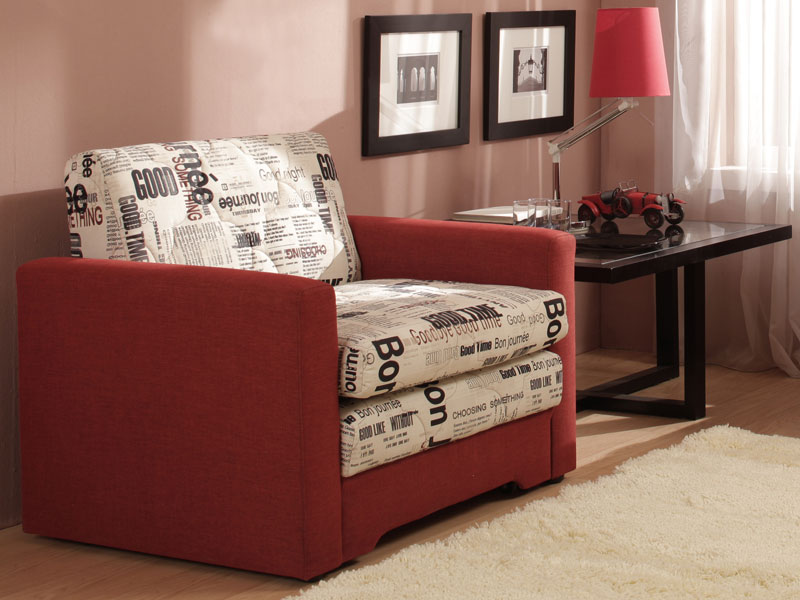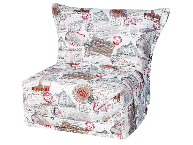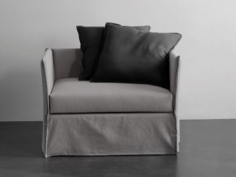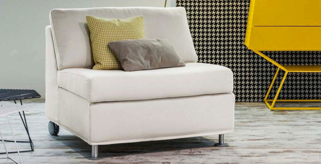 - Italian factories Meridiani, Bonaldo and others make armchair-beds on a frame with a trellised orthopedic base made of metal and wood, allowing to get the width of a berth up to 84 cm. Upholstery is made of high-strength textiles.