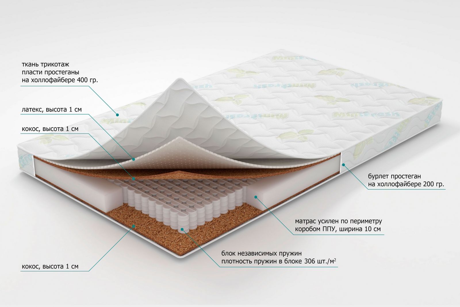Polyurethane belongs to the most modern materials, replacing the outdated foam. Elastic and durable synthetic composition is added to impart rigidity.For more expensive models, latex or coconut coir is used. The short and elastic fibers protecting a coconut nut, impregnate with latex structure. Such a mattress does not absorb foreign odors and repels water, is easily ventilated, hypoallergenic.