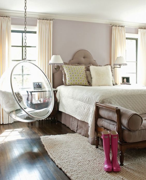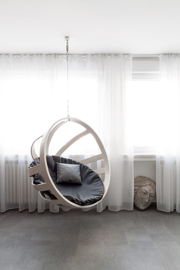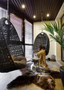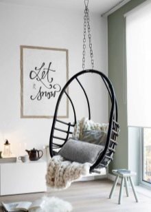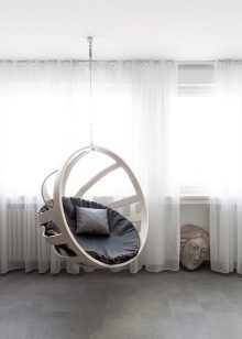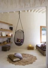 Suspended chairs are fixed to the ceiling in which the hook is mounted. Unfortunately, it is not possible to install this structure in every room so that it is durable and safe. Another disadvantage is that once you install such furniture in your home, you will not be able to change its location in the near future, since to do this you will need to install another ceiling mount.