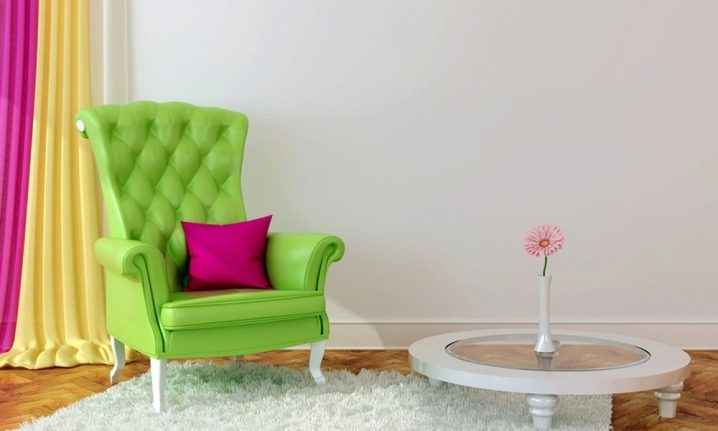 To give the furniture an original look is capable not only of an unusual form or material, but also of color. For example, you can choose a soft chair of this color, which will be radically different from the rest of the interior of your home. An interesting solution would be the inclusion in the interior in quiet warm neutral tones of a bright lime chair. It looks stylish and unusual.
