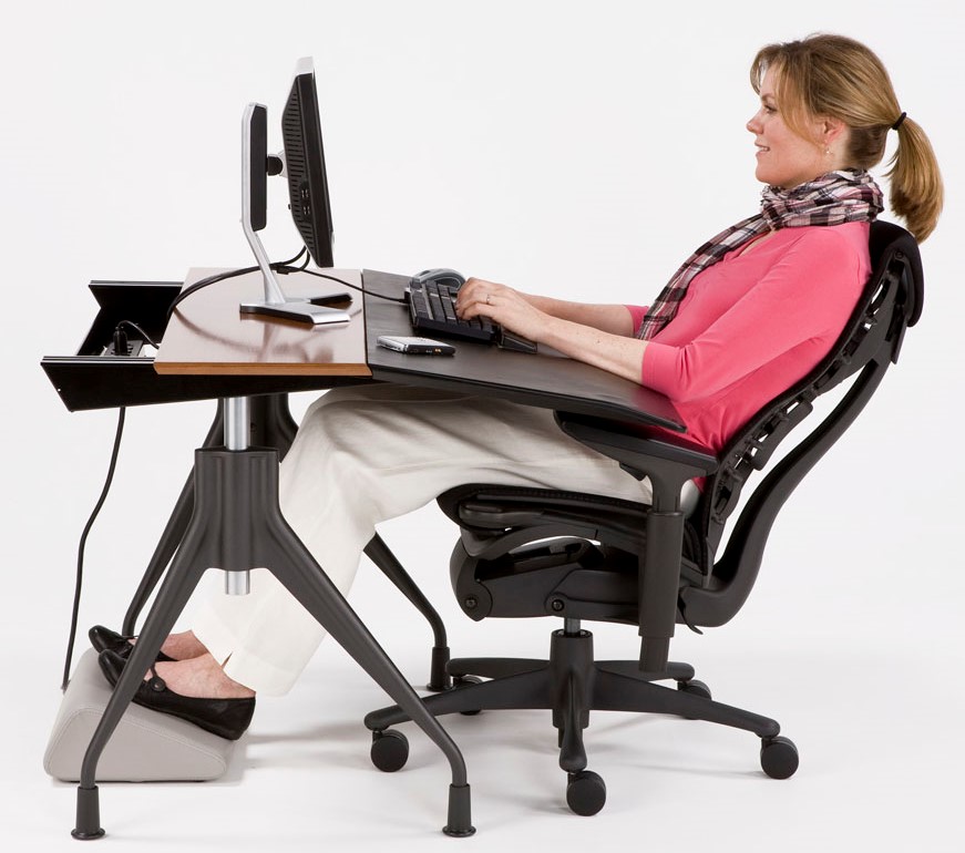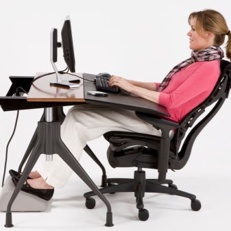 For those who practically spend their lives at the computer, it is recommended to relieve it using an orthopedic chair with knee support. It looks like a regular computer chair without armrests with knee support. Soft inserts provide maximum comfort and convenience when using it.