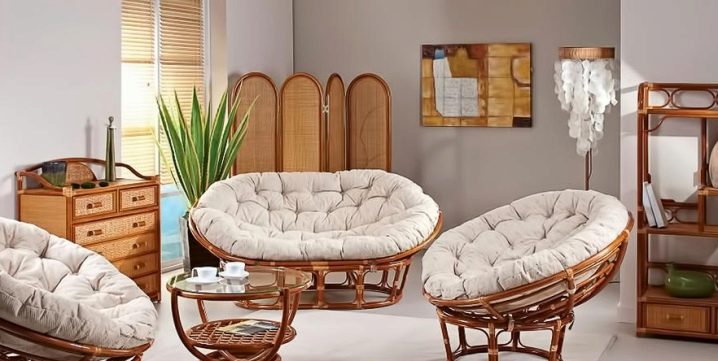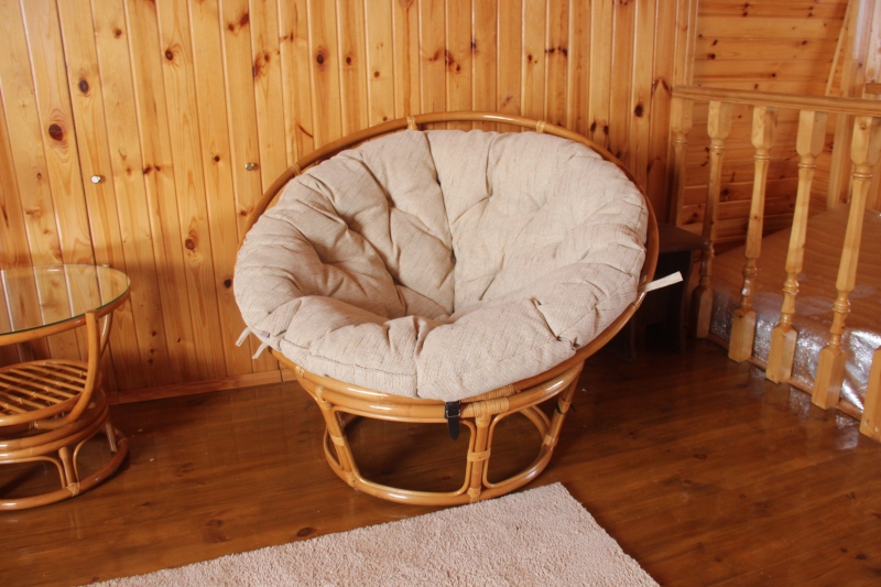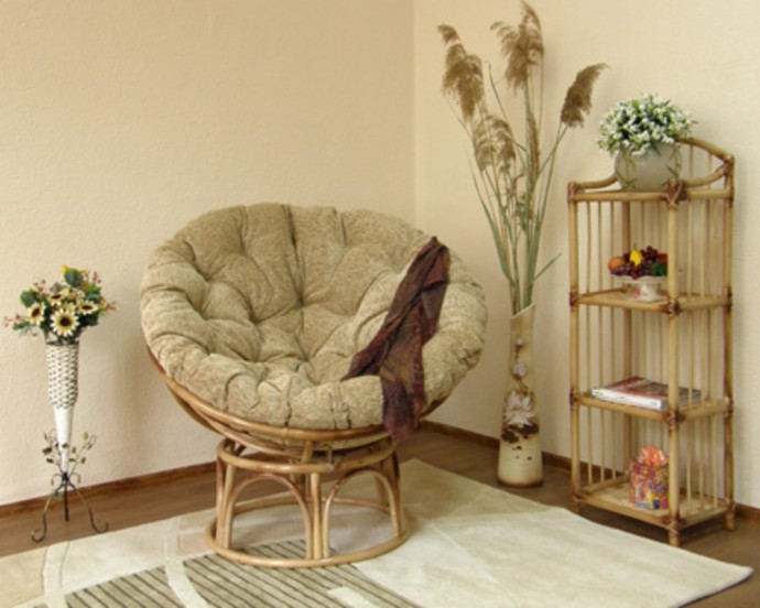 - Papasan swivel rattan swivel chair. This type of furniture is ideal for those people who do not like standard models. The robust design ensures safety, comfort and stability, as well as the complete absence of any sounds during rotation.