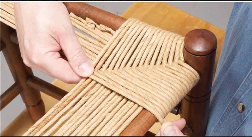 - Weaving. For this thread or wicker fasten around the perimeter of the frame at a certain distance from each other. If rattan is used, then it is simply intertwined with the base. After the completion of the first layer, they start creating the second one. This implies interlacing already previously fixed threads with new elements. The simplest option is considered to be a chess alternation of horizontal and vertical lines. But there are other methods of weaving. After that, all the structural elements of the furniture, from back to legs, are intertwined in a similar way.