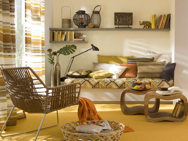 So, for example, rattan can be either light golden or brown. As for other natural materials, shades of red, yellow and brown prevail. Some bamboo chairs are distinguished by green stripes, which form peculiar stripes with other colors.