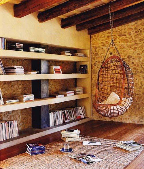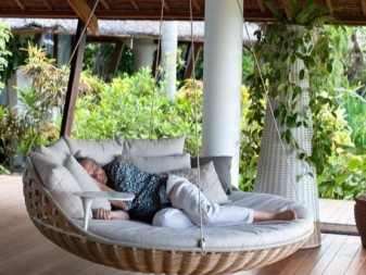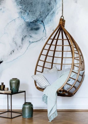A hanging chair is a comfortable resting place that is usually made from natural or artificial materials such as wicker or rattan. The product itself is either suspended from the ceiling, or mounted on a special stand, so that you can swing in the lounger. It is also called a rocking chair or a swing chair, since their main purpose is to sway a person.
