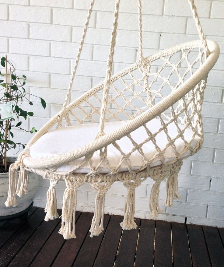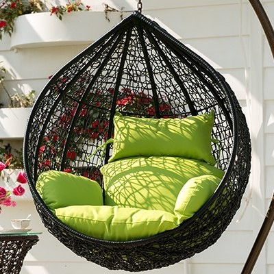 Also hanging chair can be divided by purpose. For example, a garden product is intended for installation in the open air, and therefore its material must have moisture resistance. But the baby product should have a small size and a soft seat.
