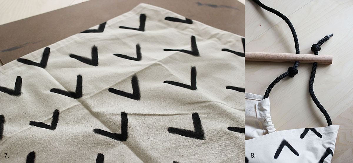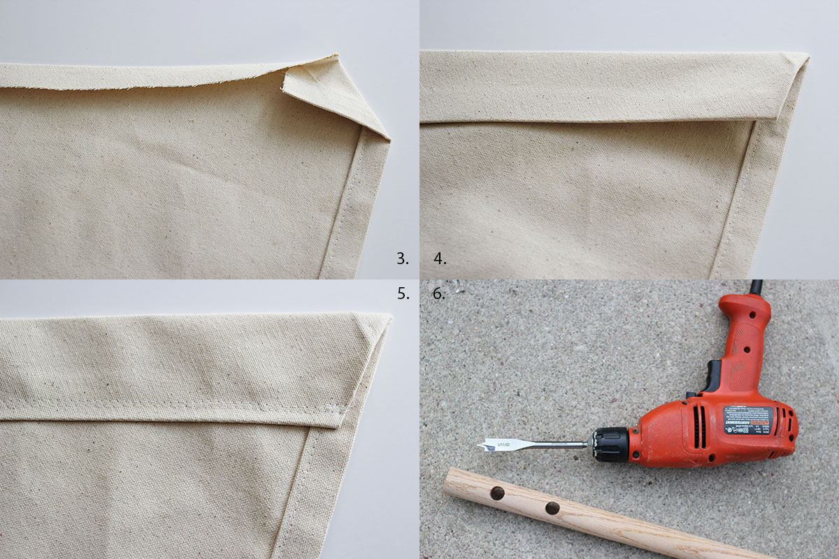 - The hanging cord pieces need to be passed through the fabric. and thread through the holes in the stick that are on its edges. Then you need to make nodes for reliable fixation.