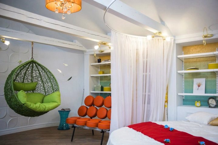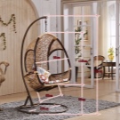 Seats are divided by the way they are hung. They can be attached to a special rack or hung from a ceiling beam or any other mount. At the same time at the request of the owners can swing in almost any direction - from side to side, back and forth, and even diagonally.