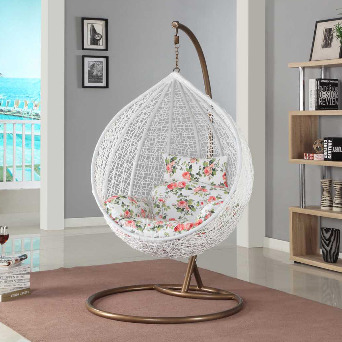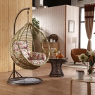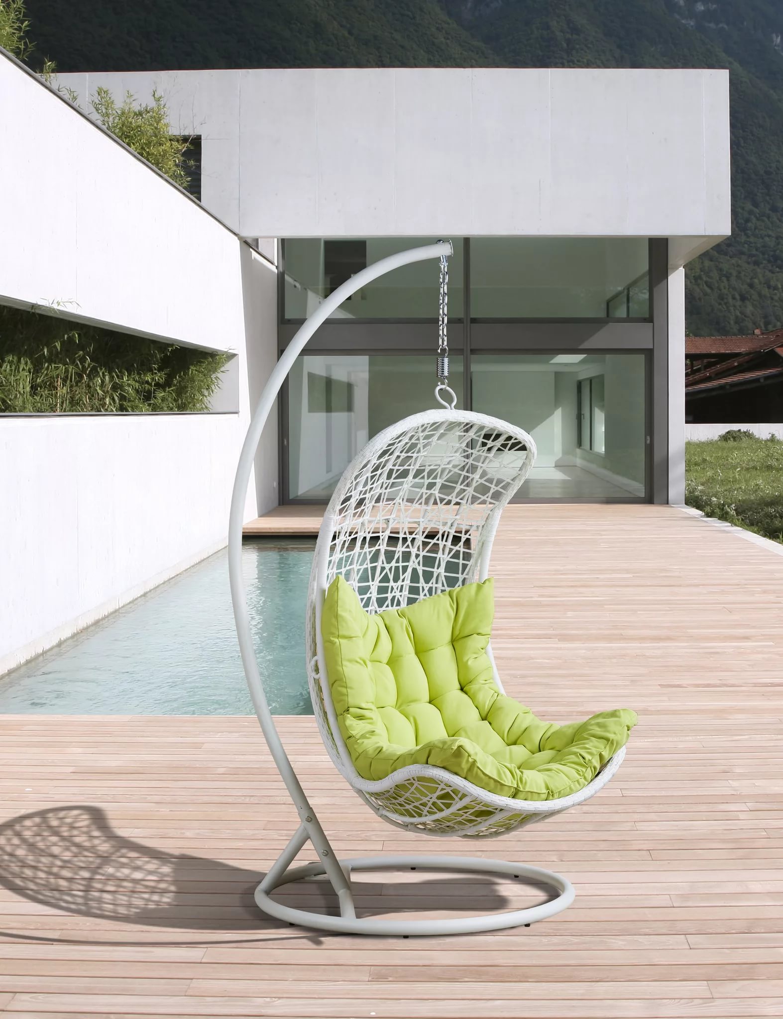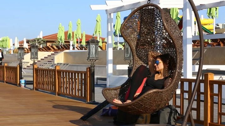 - “Ledi” is a classic of the genre. Suspended rocking chair made of artificial material. Equipped with armrests and a narrow curved back.