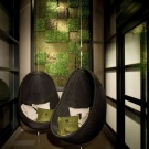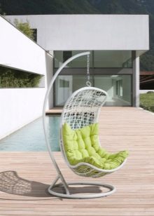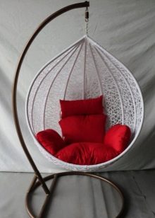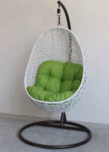 - Egg - hanging rounded chair, elongated vertically. The sides, as a rule, are connected behind the back, forming a complete structure. However, there are also options with wide armrests.