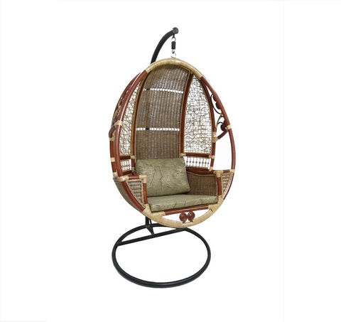 - Chinese model "Egg" on a suspension, made of red painted steel (frame) and natural rattan (back and seat). A combination of various types of weaving and a combination of palm sticks of different colors adds an exotic model.