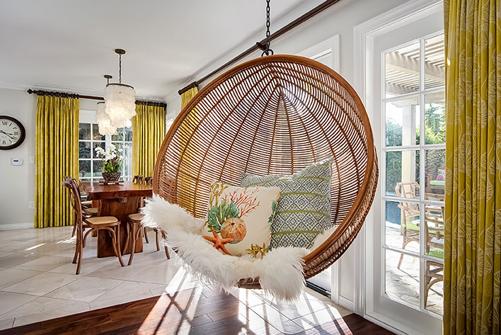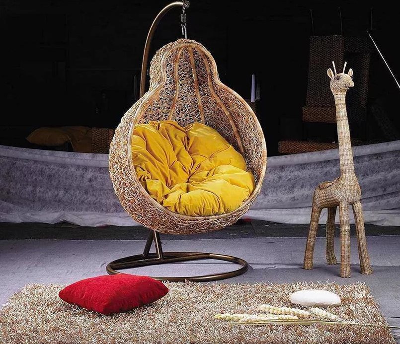 One of the main advantages celebrated by happy owners of furniture made from palm rods is its versatility and mobility. If desired, it can be hung in the room, in the courtyard or on the veranda on a warm summer day.