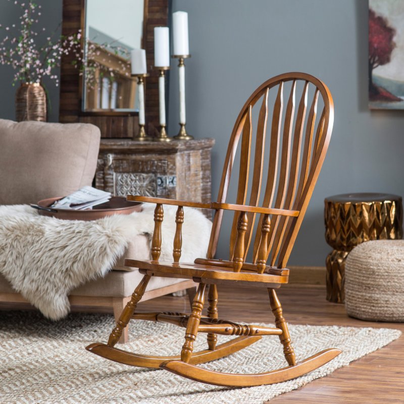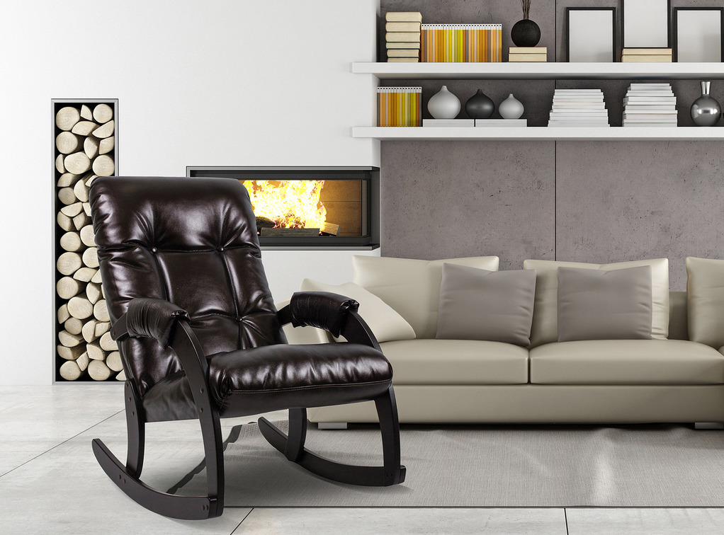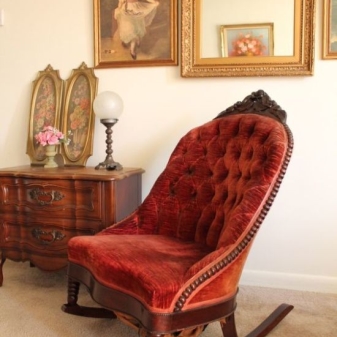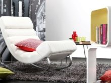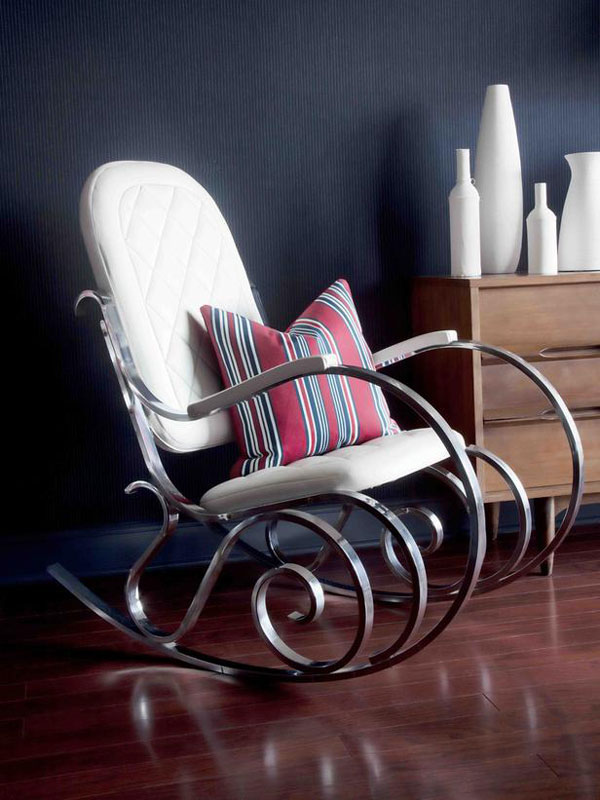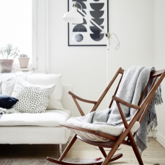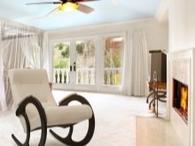 - Special attention should be paid to such an interior item as rocking chair. Such models are ideal for a person who wants to sit comfortably in a comfortable chair and relax. You can put such furniture not only in a city apartment, but also in a country house or in a country house.