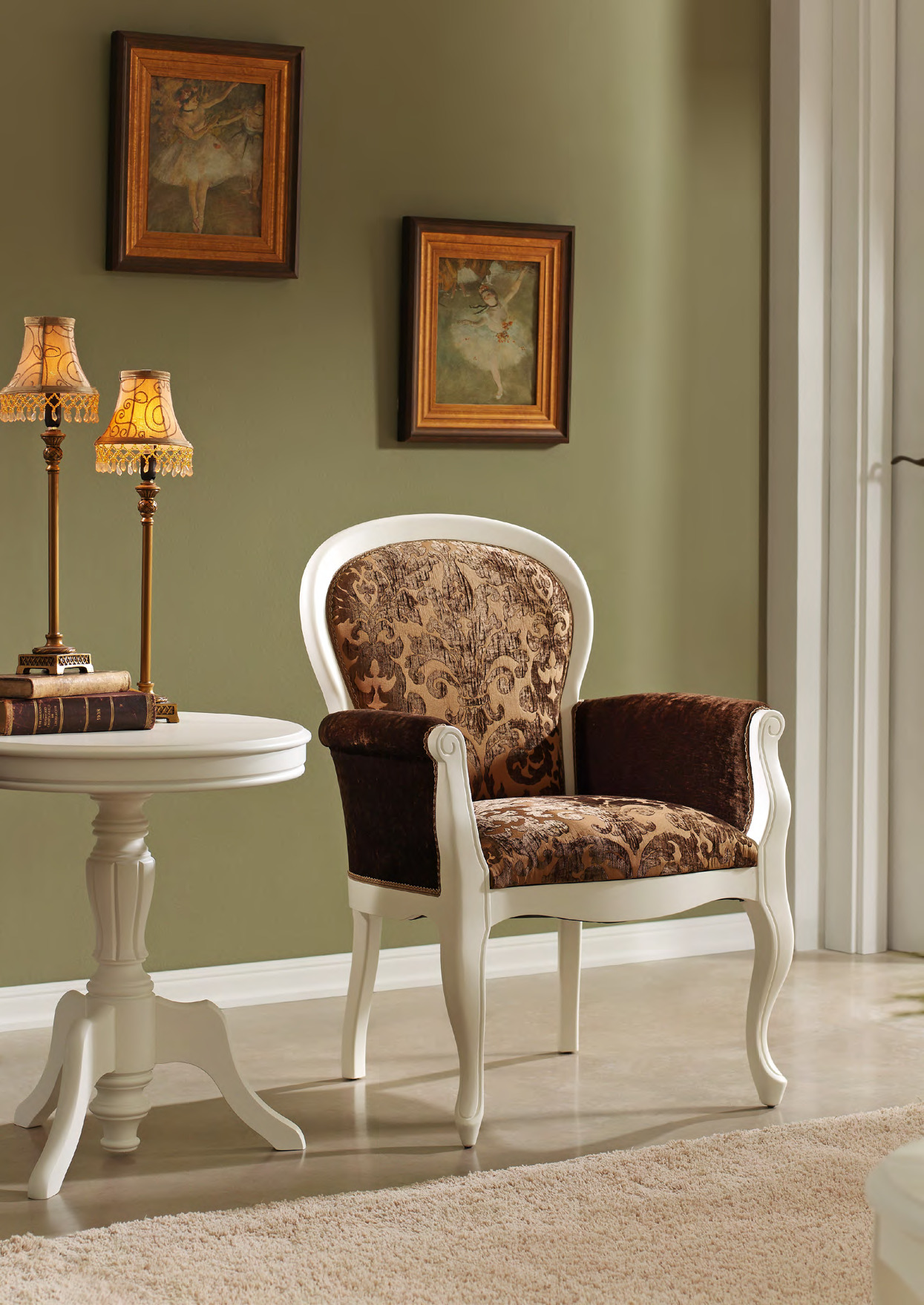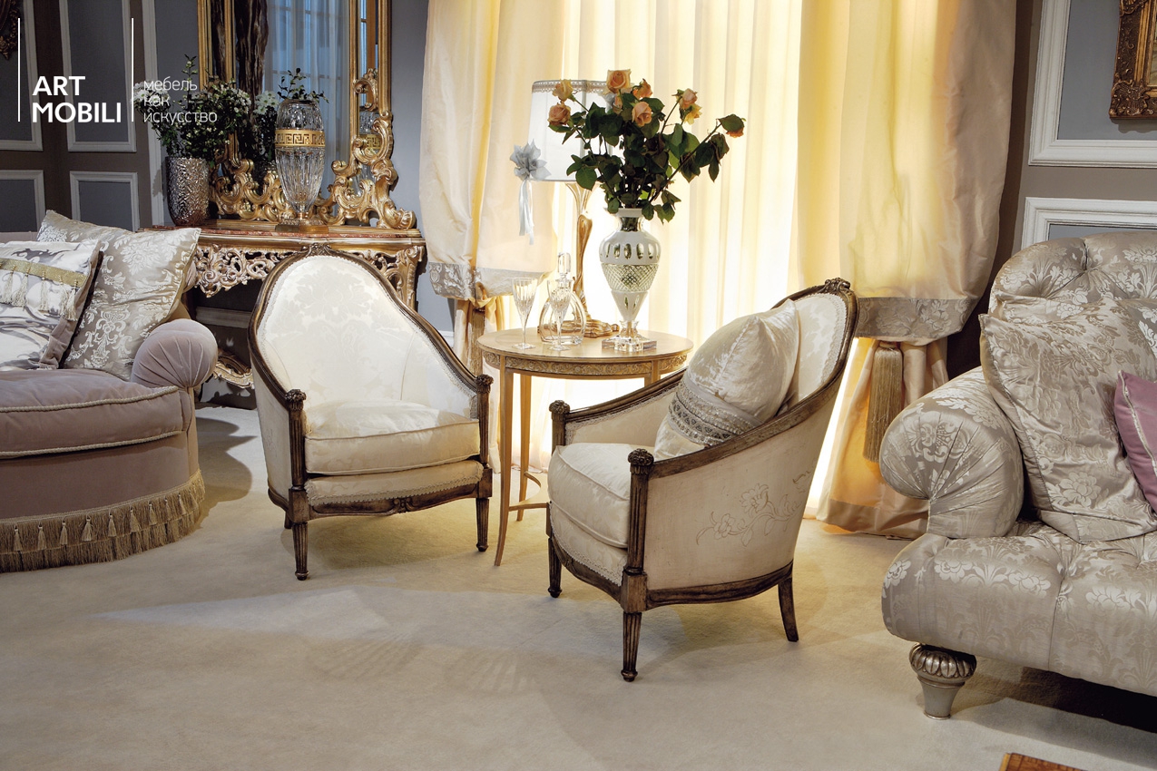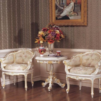 The chair-chair looks very elegant and rich, so with its help you can make the interior more presentable and solid. For example, a luxury model, stylized antique, is able to complete and decorate an ensemble in retro or vintage style.