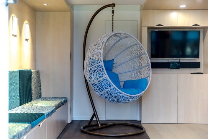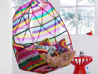 There is another variation of the suspension chair. It differs mounting not only to the ceiling, but also to the floor. When using this design, it is impossible to swing freely, you can only spin around its axis, by analogy with the mounting of a punching bag.