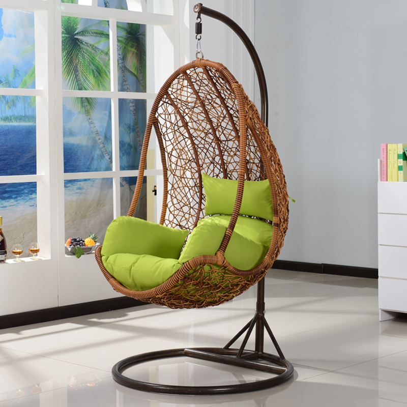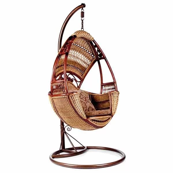 In recent years, hanging chair is increasingly used for the arrangement of country houses. There are many options for placing such an object. After all, you can install it not only inside the house, but also on the site, in the garden, by the pool, on the terrace.Perhaps the use of virtually any design. For example, a hanging model can even be mounted on a tree, the product on the stand will be picturesquely located in the garden. For outdoor use the best option would be a rattan chair. At the same time, experts advise to prefer artificial rattan. It is much more resistant to various natural phenomena.