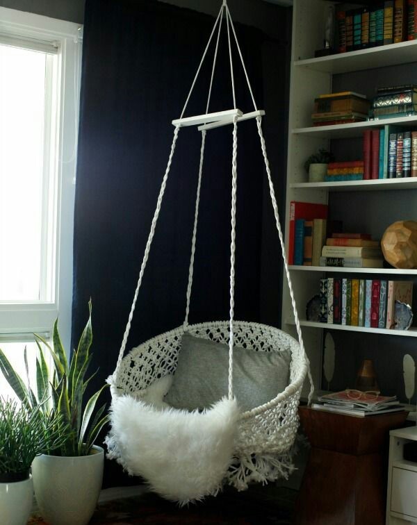 - First you need to make a frame from any material available to you. To do this, you need to connect 2-3 hoops of the same size to get the shape of an egg or a ball. For ease of use inside, you can position a pillow, a plank, and you can simply weave a place to sit.