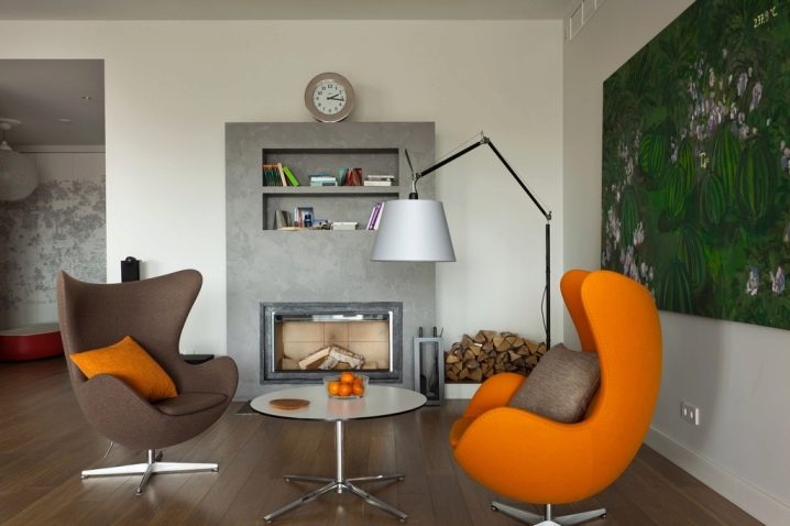The egg chair can be placed in any room. But the most suitable place for this product, of course, is the living room. This version of designer furniture will by no means replace traditional armchairs and sofas. His role in the interior is different - with such an unusual accent the living room will play with completely different colors. Of course, this solution looks best in large duplex apartments or houses.