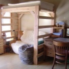 Even if the bedroom is not as big as we would like, you can make it original and cozy with the help of a loft bed. Such a bed will be liked primarily by creative people who can realize all their fantasies. Raising the bed closer to the ceiling, make room for the location of another significant area. This may be your own mini-workshop or recreation area: