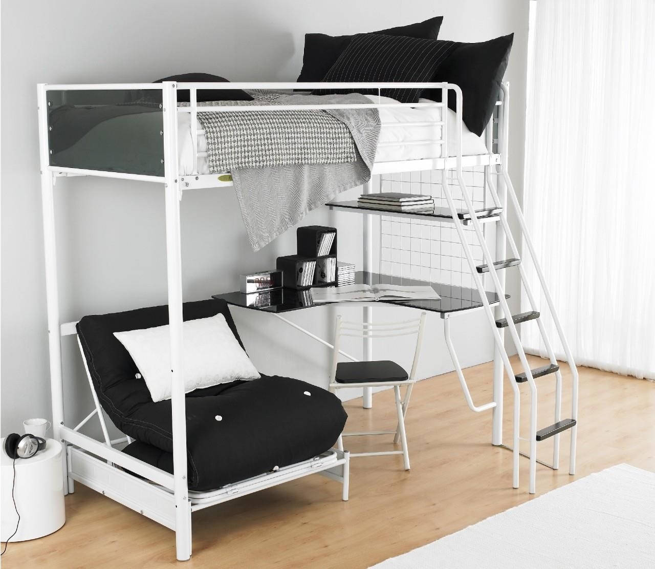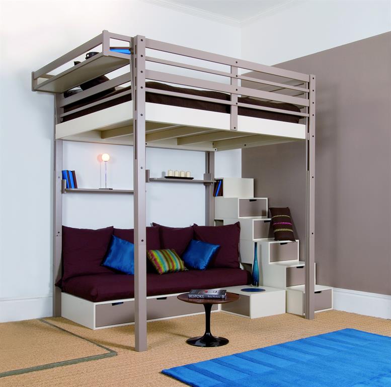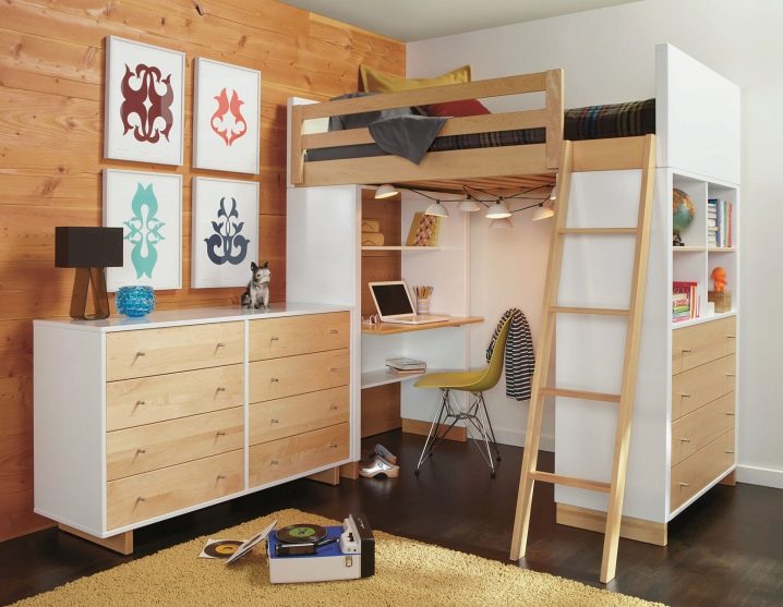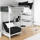 But, like any other furniture, the loft bed has its drawbacks. Its main drawback is the high cost. But if you compare the cost of several full-fledged pieces of furniture, such as a sofa, armchairs, a desk and a wardrobe, you get a much larger amount. Therefore, the high price of such a bed is justified by the fact that it can replace other furniture.