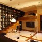 - On the ground floor you can create a recreation area.consisting of a soft sofa or two chairs and a coffee table. These ideas will allow you to recuperate after a hard day's work or spend time in good company. In this case, the attic will not be evident, and the room will be a full living room.