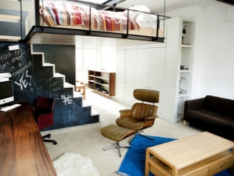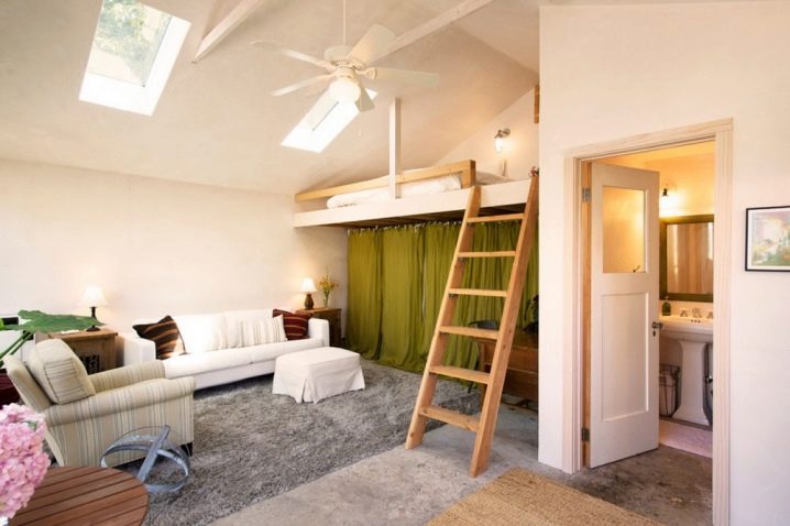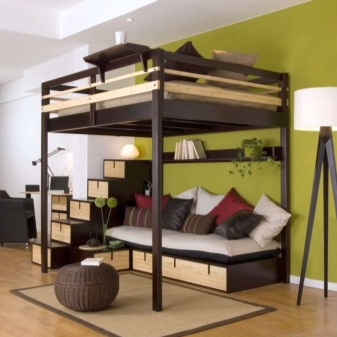 Making a studio apartment or a studio apartment, you can turn a boring room into a cozy nest. To do this, just need to choose the original design of the loft bed for adults.