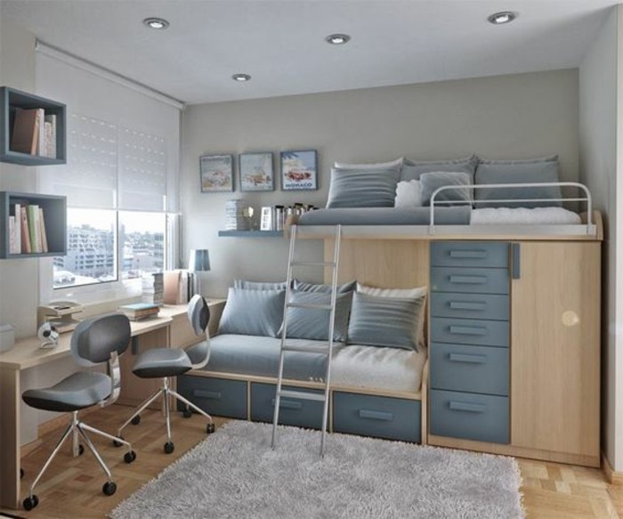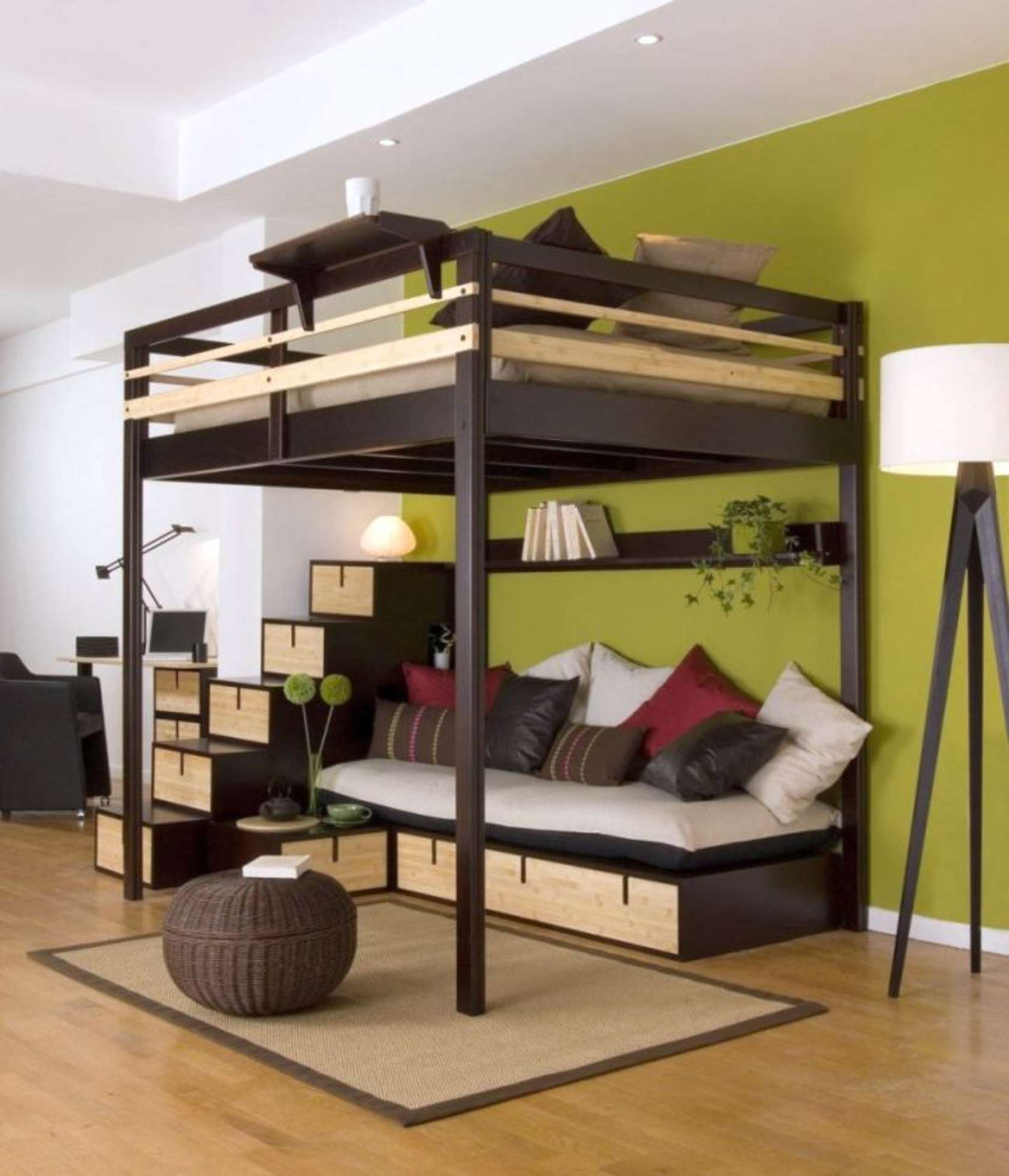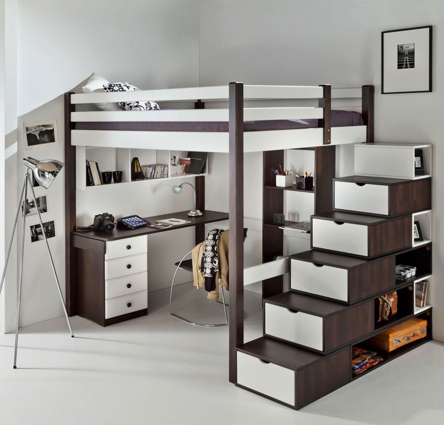 Despite its simplicity, a loft bed can decorate a bedroom or a living room bedroom.Its design allows efficient use of space for the installation of other pieces of furniture.