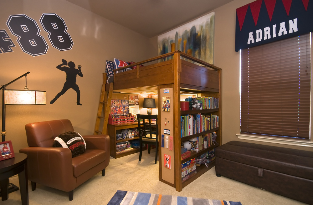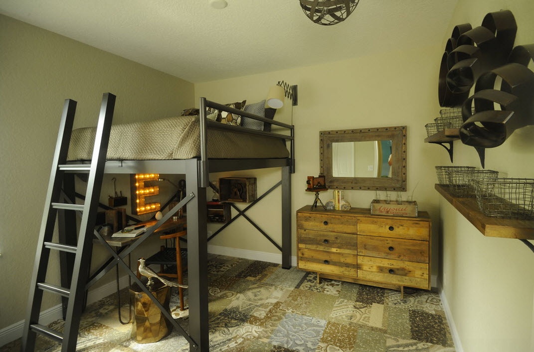 It is important to focus on the interior of the room. The loft bed should fit perfectly into the space and be in harmony with all pieces of furniture.