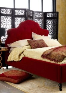 - Do not go to extremes. As already mentioned, the design of the bed in a neutral shade is a win-win. However, this does not mean that you need to forget about brightness. Even red color, which, it would seem, is too aggressive for a bedroom, under certain conditions can look favorably. For example, if the entire room is trimmed in a monochromatic light shade, the red bed will become a stunning juicy accent. In addition, this room will look very stylish and modern.
