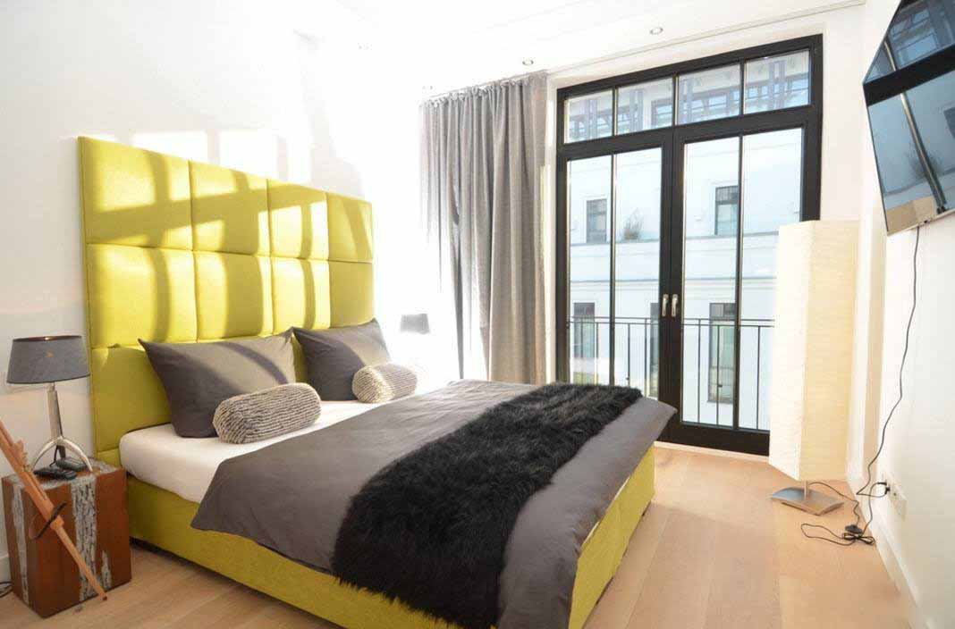 If you can’t even imagine that yellow can be chosen to decorate the bedroom, then look at this photo. Juicy cheerful color fits perfectly into the discreet style of the room. Bed frame and cabinets look especially bright against the white walls and ceiling, but they do not cause irritation or dissonance at all. On such a bed you will see only good dreams.