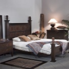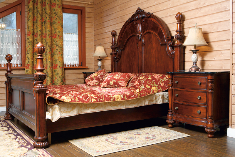 - Fans Mediterranean design make out a wooden bed with massive carved legs and high frames with handmade patterns.