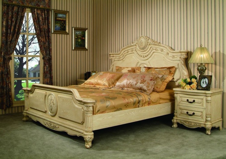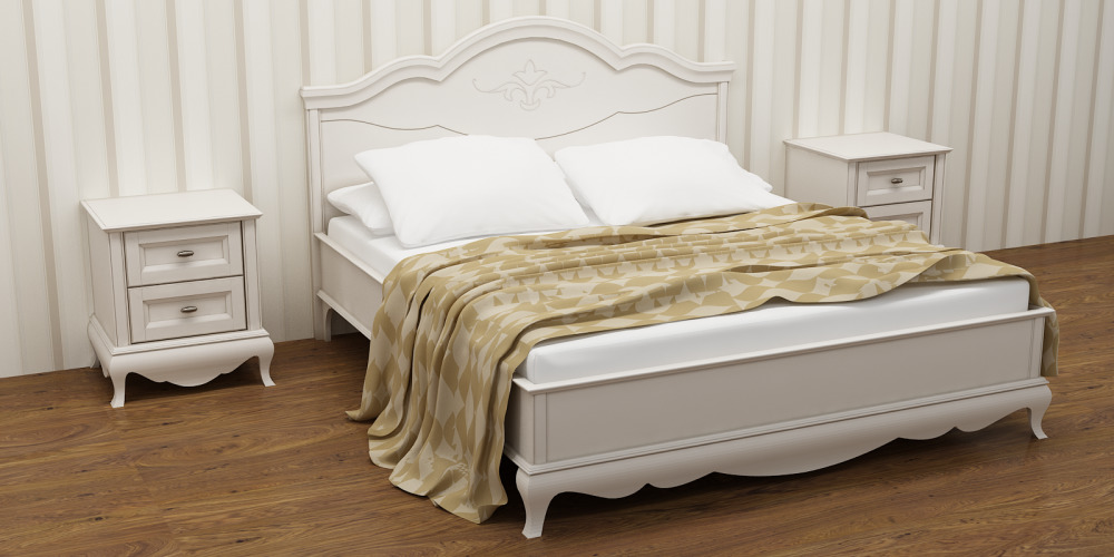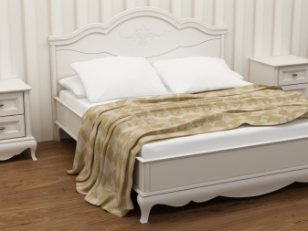 - Famous designs of white wood with carved texture and patterns are the hallmark of a room in style. Provence. The lightness and "airiness" of such a bed can not leave indifferent. It combines simplicity and grace, can be embodied in the form of rectangular and various other shapes.